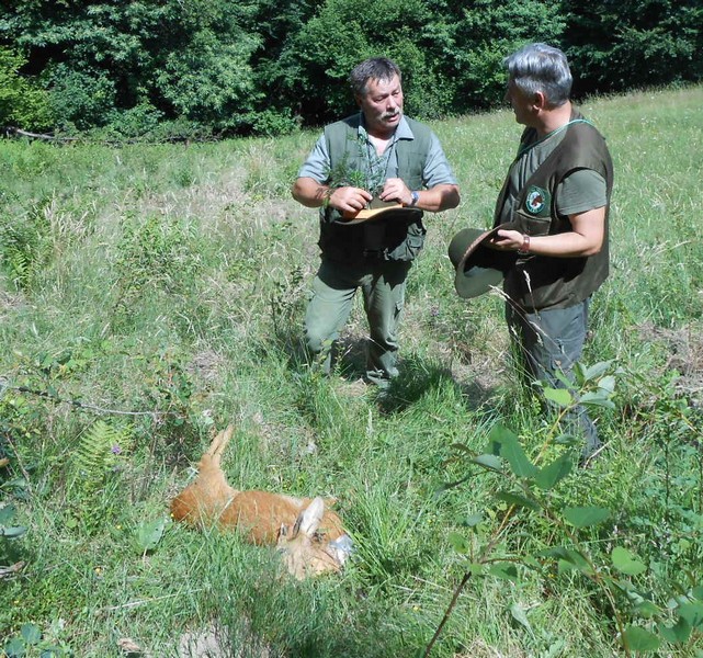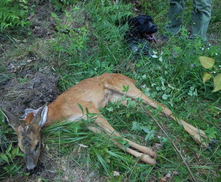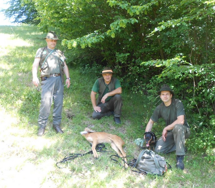 Ob zbiranju rezultatov in izpolnjevanju kinoloških dokumentov, je Janez Šumak izkoristil priložnost ter s pomočjo kinologov postavijo s slednimi čevlji, krvjo srnjadi cca 400m dolgo »šolsko« sled, na koncu trup srnjaka. Slednji lovskim pripravnikom narejeno tudi teoretično in praktično predstavi. Nakar pokliče že »okrašen tandem« z bavarcem, ki rutinirano po sledi pripelje oz. pokaže vodniku plen… 25 lovskih pripravnikov je bilo ob opazovanju navdušenih, saj so delo akterjev v zaključni fazi nagradili z bučnim aplavzem.